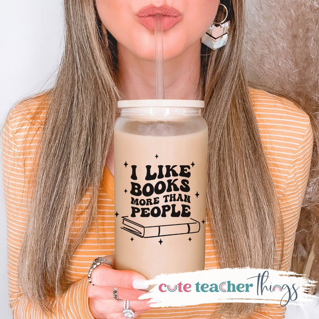 I Like Books More Than People Frosted Glass Cup